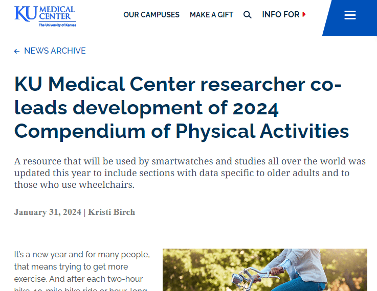 KU Medical Center researcher co-leads development of 2024 Compendium of Physical Activities